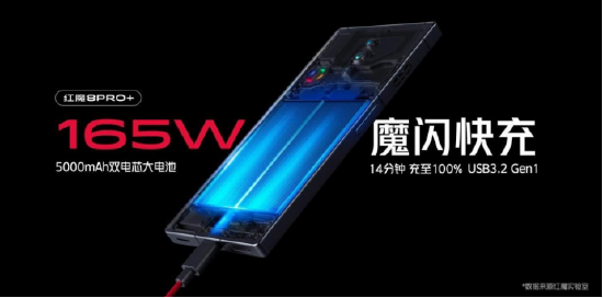 红魔8 Pro系列在续航上给到了充电与效率的黄金平衡,一共拥有双版本可选,红魔8 Pro+搭配的是165W魔闪快充+5000mAh电池,0%-100%最快14分钟充满,刷新红魔快充速度上限。红魔8 Pro搭配80W快充+6000mAh电池,0%-100%最快35分钟充满,满足有长续航需求的用户使用。同时红魔8 Pro系列还搭载全链路充电保护系统,边充边玩更安全,发热也得以控制。