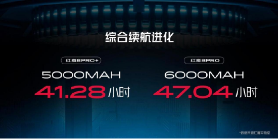 以往大家印象中的电竞手机是在提供高性能的时候,也牺牲了部分续航,但是在红魔8 Pro系列上打破了这种认知。红魔8 Pro系列不仅拥有超级快充与超大电池的加持,还搭载了红魔CUBE能量魔方,支持全场景的智能识,轻度场景更省电,重度场景则保持最佳性能,从而提升红魔手机的能效比。在CUBE能量魔方的加持下,红魔8 Pro的续航时长可提升20%以上。根据实测,在普通用户微信、视频、网页等日常使用场景下,红魔8 Pro+续航长达41.28小时,更大容量的红魔8 Pro续航时长更是达到 47.04小时,完全可以做到2天1充。而且在快充的加持下,可以很快的充满,既省电又省时,可以尽情使用。