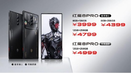 红魔8 Pro系列提供了多个存储配置版本供玩家灵活选择:红魔8 Pro暗夜骑士,8+128GB,售价3999元;8+256GB,售价4399元;12+256GB,售价4799元;红魔8 Pro氘锋透明版12+256GB,售价4999元。红魔8 Pro+暗夜骑士,12+256GB,售价5199元;16+512GB,售价5799元;红魔8 Pro+氘锋透明版,12+256GB,售价5399元;16+512GB,售价5999元,16+1TB,售价6999元。红魔8 Pro系列已在红魔商城、努比亚京东自营旗舰店开启预售,并将于12月28日10:00在全国线上线下渠道同步开售!