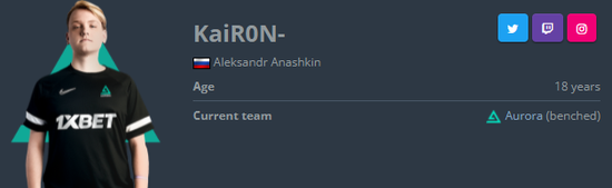 YEKINDAR和Dzhami " Jame " Ali一样,都把明日之星提名给到了他的同胞Aleksandr "KaiR0N-" Anashkin。后者在今年11月被Aurora放到板凳席上,并且在里约Major的RMR赛事中随队以15-16名出局,虽然他拿到了队内第二的平均0.93 Rating。