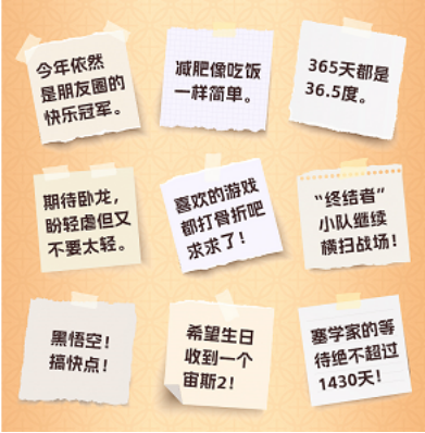 “今年依然是朋友圈的快乐冠军”、“减肥像吃饭一样简单”、“期待卧龙,盼轻虐但又不要太轻”、“喜欢的游戏都打骨折吧,求求了”、“‘终结者’小队继续横扫战场!”、“黑悟空!搞快点!”、“塞学家的等待绝不超过1430天!”“希望生日收到一个北通宙斯2!”等等广大玩家的心声已被回应,新年新开局,你准备好了吗?