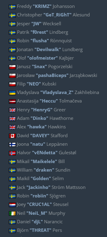 HLTV请到了诸多著名CSer出席,包括波兰传奇选手Snax、pashabiceps和NEO,瑞典传奇选手f0rest、GeT_RiGhT和JW。有许多被提名者也将来到现场,如karrigan、s1mple、sh1ro等。kennyS和NBK-因为晚会日程与ECL赛事冲突,不得不缺席。