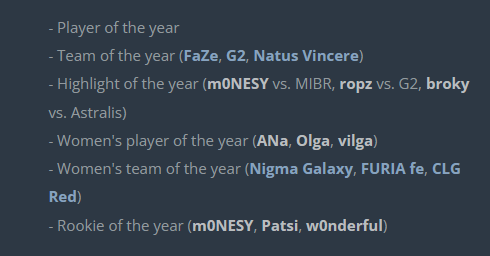 HLTV即将在1月15日1:00正式举行HLTV年终颁奖晚会,典礼期间将决出今年的TOP1等一系列奖项。典礼将在斯德哥尔摩的Space Arena举行,有300位CSGO业内人士出席。