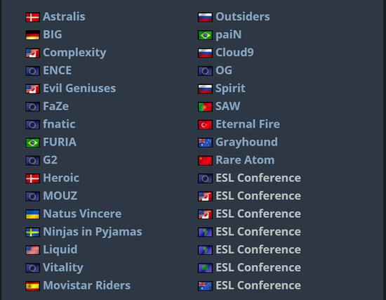 目前获得EPL S17席位的队伍有: