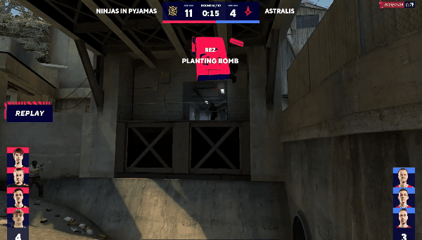 下半场攻防转换,手枪局NIP率先控制下水道,大壮的双枪一个没杀直接哑火。随后NIP转A小直扑A包点,在吸引到Astralis回防之后又迅速转B。快速的转点让Astralis疲于奔命,最终丢掉了手枪局。