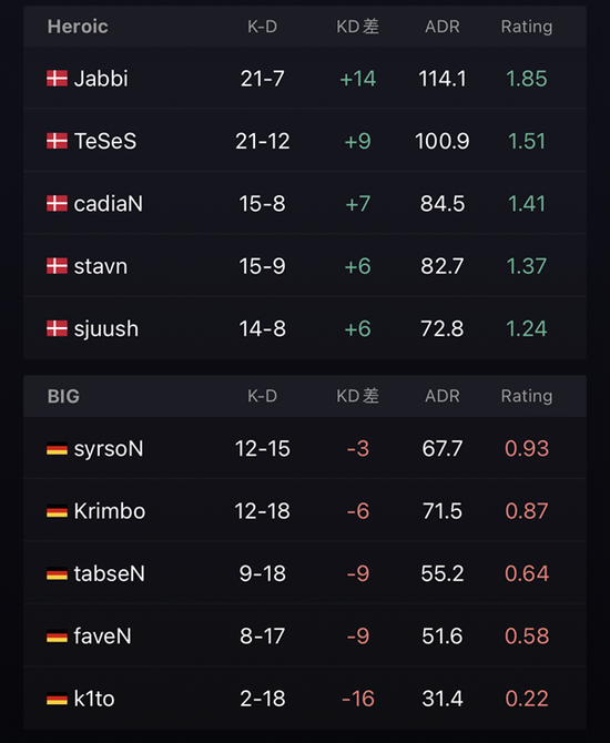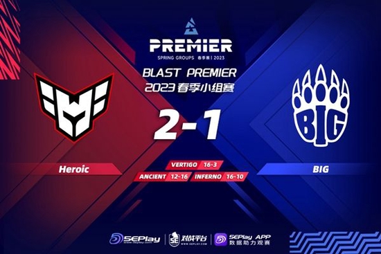BLAST Premier 2023春季赛淘汰赛,德国战车BIG对阵Heroic,后者在之前的小组赛中的表现并不尽如人意。双方经过三场大战,最终Heroic以2-1战胜BIG,成功获得晋级的名额。
