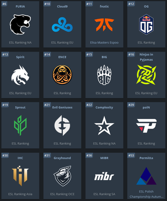 你可能会问A队在哪里。A队因为ESL积分的关系,未能挤进直邀乃至Play-In行列。