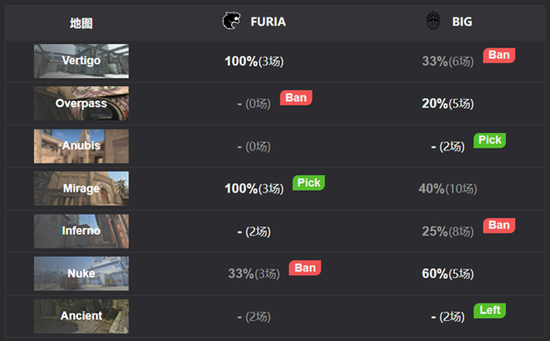上半场BIG状态起飞,强悍的进攻打的FURIA的包点千疮百孔。上半场结束,双方比分来到12-3。