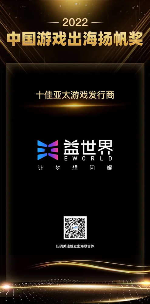 从初涉海外发行业务,到如今喜获“2022中国游戏出海扬帆奖”,益世界的海外版图正不断“升级扩容”。随着中华文化在全球范围内拥有越来越强的社会影响力,中国游戏跨越国界和语言,在世界各国处处生根发芽。益世界这支年轻的游戏出海舰队,也将持续通过这一文化输出窗口扬帆起航,携手让优秀的中国游戏和中华文化走到更远的地方。