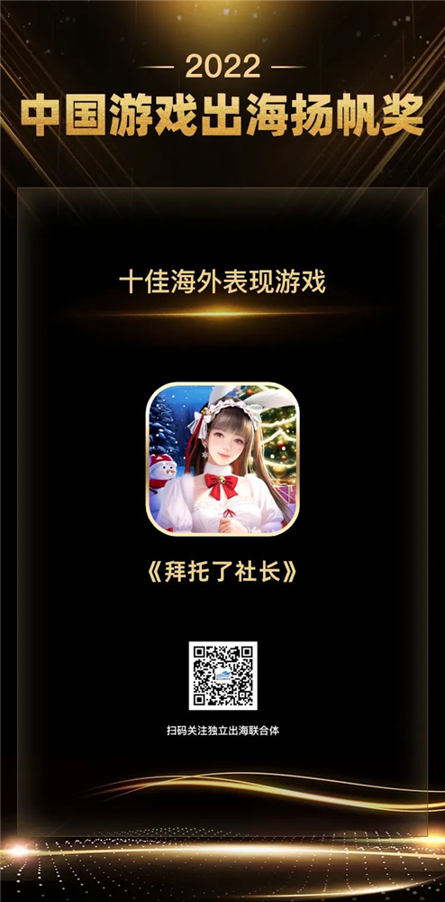 近日,“2022中国游戏出海扬帆奖”评选结果揭晓,益世界荣获“十佳亚太游戏发行商”,旗下《拜托了社长》(《商道高手》海外版)荣获“十佳海外表现游戏”。
