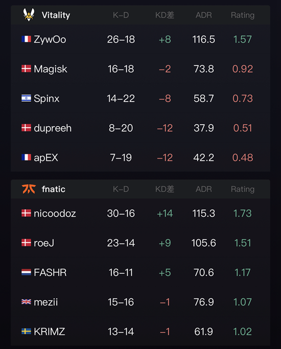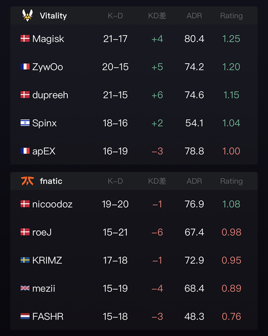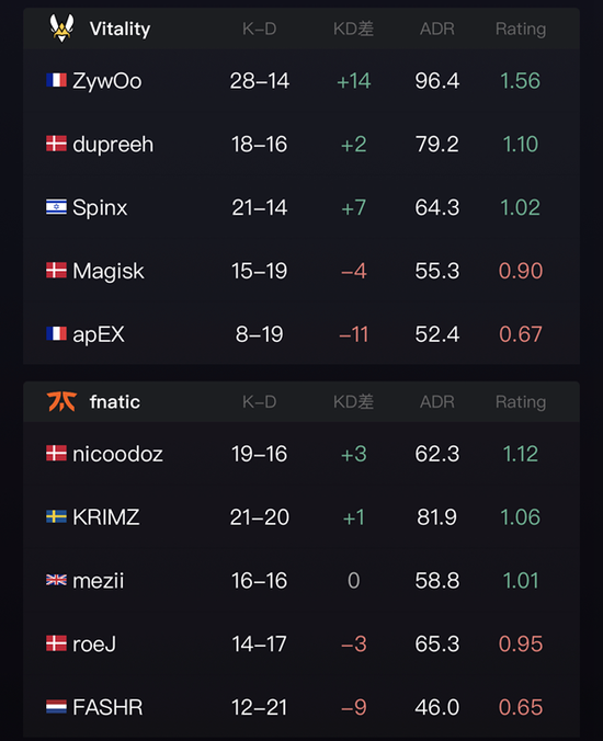 在自己的选图状态下滑严重的Vitality只能被迫接受被暴打的事实,抓住机会拿下赛点的fnatic很快以16-8结束了比赛。