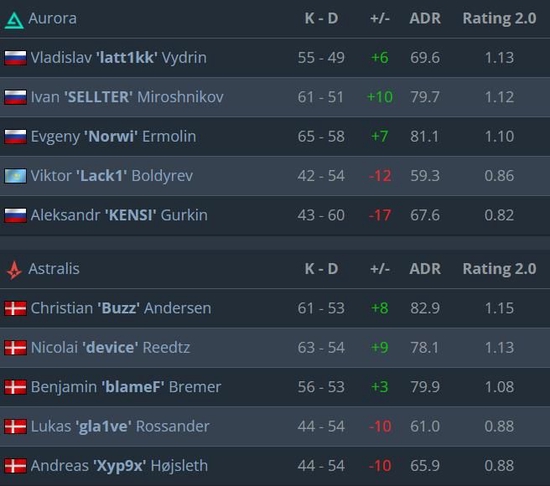 Astralis则是击败了EYEBALLERS、9INE和Copenhagen Flames战队进入决赛。决赛首张地图是Ancient,A队轻松拿下。不过在Mirage上Aurora也回敬对手一个16-9。最终的决胜图Nuke上双方一路打入加时,最终Astralis以19-15的比分惊险击败对手,拿下CCT 北欧系列赛3的冠军。