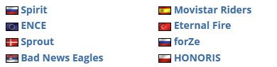 第一个收到邀请名额的是ENCE,HONORIS和forZe通过CCT中欧系列赛的优秀表现获得晋级资格。本来Copenhagen Flames也获得了资格,但是由于和RMR资格赛发生冲突,他们的名额被Movistar Riders取代。