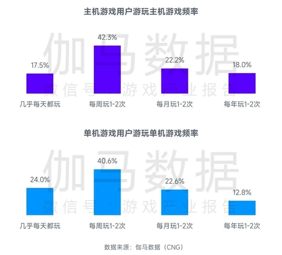 主机/单机游戏:6成左右用户每周或更频繁的游玩