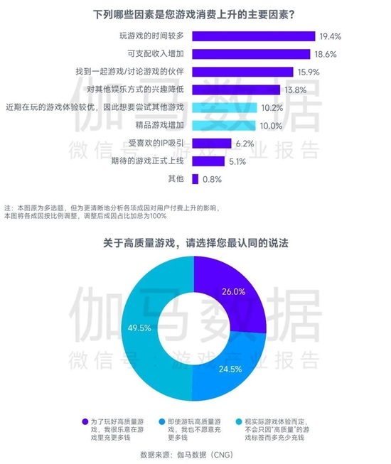未来,为用户提供符合其价值认知的付费点及付费方式将助力用户付费升级,而改变部分用户充值的思维模式也将成为必然,例如针对部分用户反感为数值付费的状况,可让其为解锁精品化游戏内容和更好的网络、硬件等游戏体验付费。