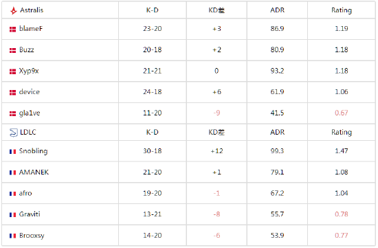 昨晚欧洲RMR封闭预选赛首轮比赛,Astralis首战在Infenro上对阵LDLC战队。Snobling和AMANEK发挥出色,他们二人带领着LDLC 16-14击败了Astralis战队。