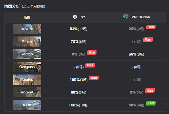 比赛来到Nuke,手枪局G2就给予PGE Turow一点颜色,huNter在他最爱的死管位置得到三杀,但他们第二局差一点点被手枪翻盘,还好“寿星”NiKo拿下1v1残局。随后G2没给对手什么机会,K1 NiKo的外场十分坚挺,jks+m0NESY的铁板防守更是不会有PGE Turow进攻的空间,G2连得7分。