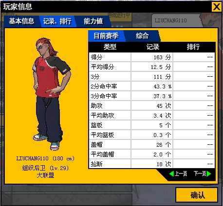 刚开始玩街球的那段时间,想起来很可笑。不停的失误,不停的被队友怒骂。“TMD你会不会打?菜鸟”、“操,我空了你看不到?”、“不会打就退吧”。。。这样的指责不断接踵而来。作为G,我迅速作出了调整,尽量减少了控球时间,减少了浪投,增加了跑位和队友的配合,后来战绩逐渐的提升到了50%以上,3分球命中率也提升到了40%以上,开始从菜鸟转为入门级别,慢慢了熟悉了游戏操作和团队配合,为日后的征途打下了良好的基础,也认识了一些好朋友。我无聊的生活开始获得了一些乐趣。