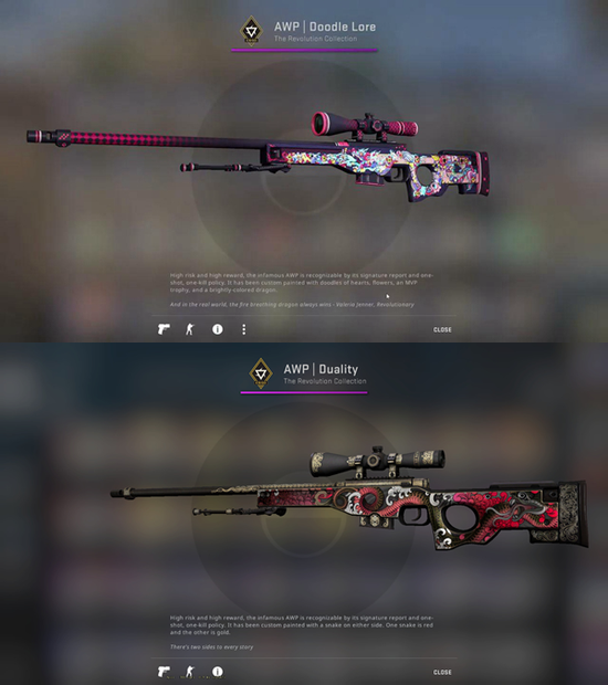 先前新发布的变革武器箱中,一款名为Doodle Lore的二次元风格AWP皮肤格外引人注目。但让所有人都始料未及的是,该皮肤的作者使用了著名艺术家Vexx的一幅作品,因此V社最终决定把所有玩家库存内的AWP | Doodle Lore都替换成AWP | Duality。