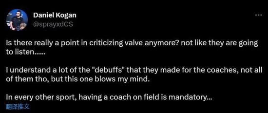 ATK战队主教练sprayxd也对此发表了看法:批评V社真的有用吗,感觉他们根本不会听的。我理解他们对教练的很多debuff操作,但这真的是刷新我的认知。