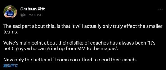 除此之外,另外一个关注点就是该决策会如何影响那些小队伍。Compleity战队经历messioso提到他们可以负担得起送教练T.c前往蒙特雷的费用,但对于Detonate、yur和Nous等战队来说,这是笔不小的开支。