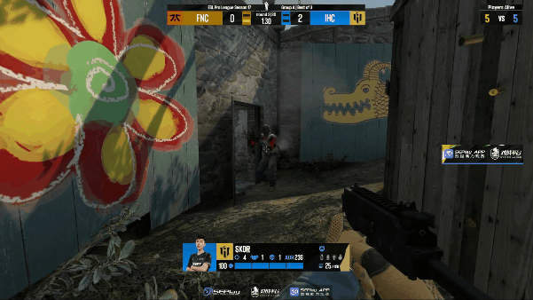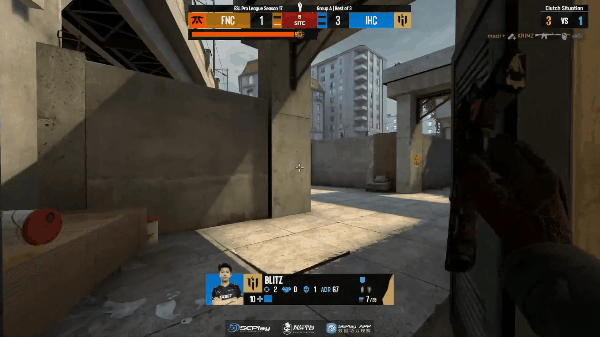 图二是FNC选择的Overpass,第一个手枪局T选择一波强打B点,但被IHC赌点成功,拿下第一个手枪局。前期防守的IHC将阵型压得非常靠前,打乱对手的前期默认阵型,第3回合,sk0r前压拿下3杀,帮助队伍前期拿下3-0的比分领先。在A点屡屡受挫的FNC,在接下来的几回合集中抱团打B,接连打对B点展开狂轰滥炸般的进攻取得分数,终于在第8回合,bLitz拖足进攻时间后,将比分追至4-4。在第9回合,B点的众人用道具顶住FNC的进攻后,将比分反超,并且将领先优势不断扩大。终于,在mezii的带领下,FNC进攻势如破竹,不断拿下IHC的防守包点,在上半场以7-8紧咬住比分。