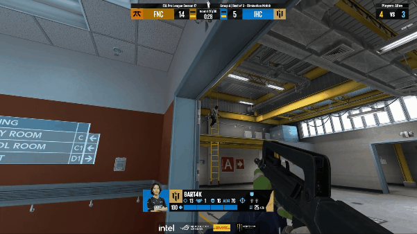 下半场的手枪局,IHC5人集合的飞二楼进攻,被roeJ和nicoodoz两人瓦解,在nicoodoz完成双杀后,FNC将比分领先带至10-6。此后,双方将重心放到了香蕉道上,IHC不断地将比分追近,第22回合,nicoodoz站了出来,逐渐打出手感的他完成了残局1v3拿下单回合4杀,将IHC翻盘的希望摧毁,在第24回合又是他在B点来回peek拿下双杀,抵挡住了T的进攻。最后,在KRIMZ的B点拿下3杀后,FNC拿下了比赛,以16-9拿下图一。