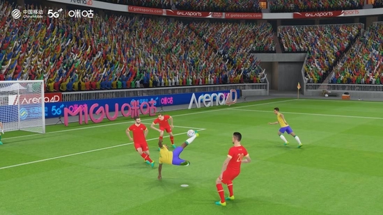 中国移动咪咕带到本届巴展的“元宇宙比特转播”吸引了大量现场观众驻足。2022年卡塔尔世界杯期间,咪咕公司通过算力和数字引擎技术率先实现了世界杯的比特转播。在赛场三维重构、人体运动模拟、竞技AI行为、大场景渲染等“硬技术”的组合加持下,用户可以进入1:1复刻的数字卢塞尔球场,观赏到360°子弹时间、球员第一人称视角、鹰眼环绕等游戏级视效。咪咕公司不仅通过比特转播技术让用户的观赛体验更加沉浸,还打造了世界杯游戏互动关卡。用户只需登录咪咕快游就能即点即玩、亲自还原精彩进球,实现了从“观看比赛”到“上场比赛”的体验升级。