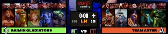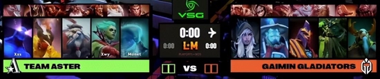 Aster天辉,GG夜魇。选人方面,Aster前两手选择了谜团加凤凰,GG选择了先知加大树,三四手Aster选择了海民加死亡先知,GG选择了沉默加蓝猫,最后一手Aster选择了水人,GG选择了小黑。