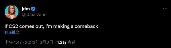 前CSGO职业选手Josh Marzano|jdm64在个人推特上表示:如果CS2发布,那我会回归CS。