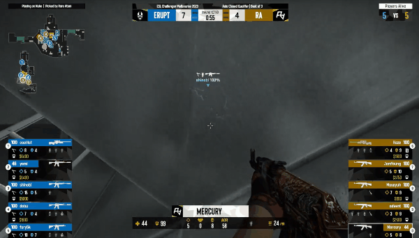 图一是Eruption主动选择的Anubis,RA先做进攻方,开局虽然手枪局丢掉但是在进入长枪之后RA凭借着出色的中路及水下控制逐渐反超比分。不过蒙古人在yAmi起到狙击枪后重新开始得分,半场8-7领先结束。 来到下半场,RA同样是先拿下手枪局,但是一旦双方进入全枪全弹的节奏RA同样抵挡不住蒙古人的一波流进攻,连拿6分之后,Eruption成功赢下了自己的选图。