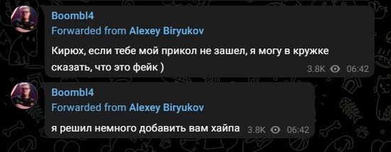 而今天凌晨的时候,Boombl4在个人telegram上向大家展示了来自OverDrive的信息:Boombl4,如果你没理解我的笑话,我想说这其实是假消息。我只是想给你增加点宣传热度。