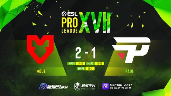 下半场攻防转换,paiN直接小黑屋快提B区,下完包之后被MOUZ回防选手逮个正着,MOUZ赢下手枪局。随后面对paiN强起局,MOUZ也毫不手软,frozen和JDC的出色表现帮助MOUZ在CT方一直得分。最终,胜券已握的MOUZ以16-7赢下本场比赛。