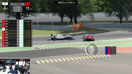 最终东南大学SEUR在王牌车手Crimson龚舒宁的稳定发挥中,率先冲线,上海理工大学USST与上海交通大学SRT紧跟其后。龚舒宁是一位在模拟器赛车领域知名度颇高的学生车手,在比赛开始之时就获得不小的关注,实力可谓是有目共睹。