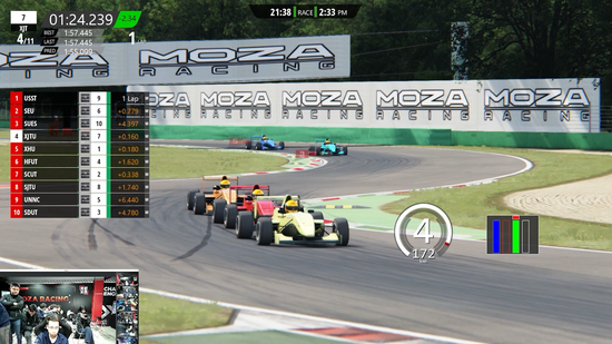 经过充分的赛前调试准备,时间来到下午3点,总决赛正式打响。汤树彦教官及MOZA资深模拟器玩家谢竞,担任此次大赛的赛事解说。MOZA当家IP小魔仙则作为现场主持,全程跟进赛事直播。