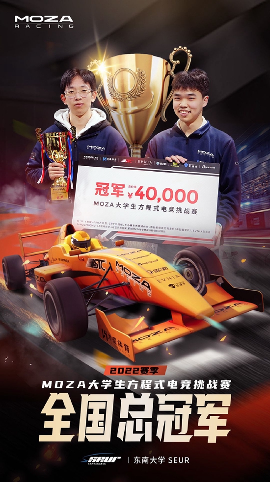 2023年3月19日,由MOZA魔爪联合力盛体育举办的“青春竞速,筑梦巅峰——MOZA大学生方程式电竞挑战赛 2022赛季”线下总决赛,于上海天马赛车场热血开赛!来自全国的10支高校方程式车队为争夺冠军荣耀展开激战。最终,来自东南大学的SEUR方程式车队力战强敌,斩获“MOZA大学生方程式电竞挑战赛 2022赛季”总冠军,上海交通大学SRT车队及上海理工大学USST车队分别获得此次大赛的亚军及季军!