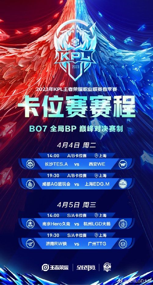 4月5日,2023KPL春季赛卡位赛即将打响,潘婕RURU旗下的杭州LGD大鹅王者荣耀战队将出战S/A卡位赛,他们的对手则是南京Hero久竞。从上赛季的B组,到本赛季的A组,再到迎来卡位赛晋级S组的机会,不知道重整旗鼓后的杭州LGD大鹅能否抓住机会。