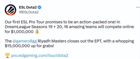 ESL官推宣布巡回联赛赛程,作为总决赛的利雅得大师赛奖金高达1500万美元!