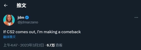 在同外媒dust2.us的沟通中,jdm64确认自己在认真考虑回归CS一事。他也坦言在告别CS三年之后,他需要做许多工作才能做好回归赛场的准备。上月2号的时候,jdm64发推表示——如果CS2发布,那么我就会回归。