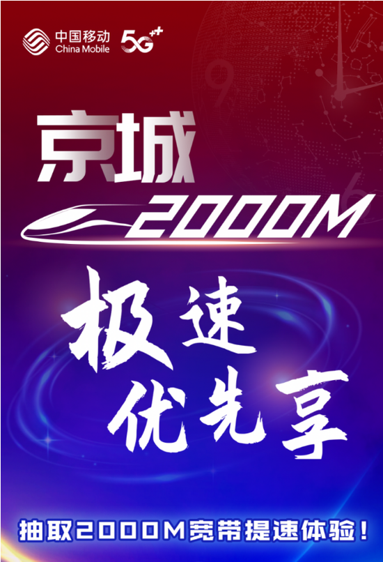 记者了解到,北京移动现面向全网用户,开展“京城2000M,极速优先享”抽奖活动。从即日起至4月30日,用户可通过“北京移动+”小程序、北京移动微信公众号、中国移动北京APP参与抽奖,将抽取不超过200名用户体验2000M宽带提速权益,配套赠送全光WiFi(FTTR)组网服务。