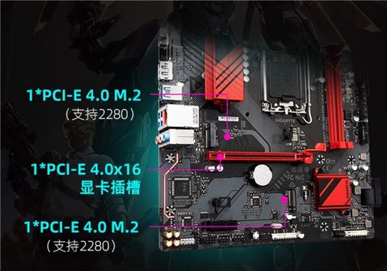 PCI-E插槽方面,主板配备1个PCI-E 4.0 x16显卡插槽,2个PCI-E 4.0 x4 M.2 SSD插槽。其设计细节也直接拉满,显卡插槽配备了PCI-E EZ-Latch快易拆,M.2插槽也采用快拆卡扣的设计,让用户安装显卡和M.2 SSD时更加快捷方便。