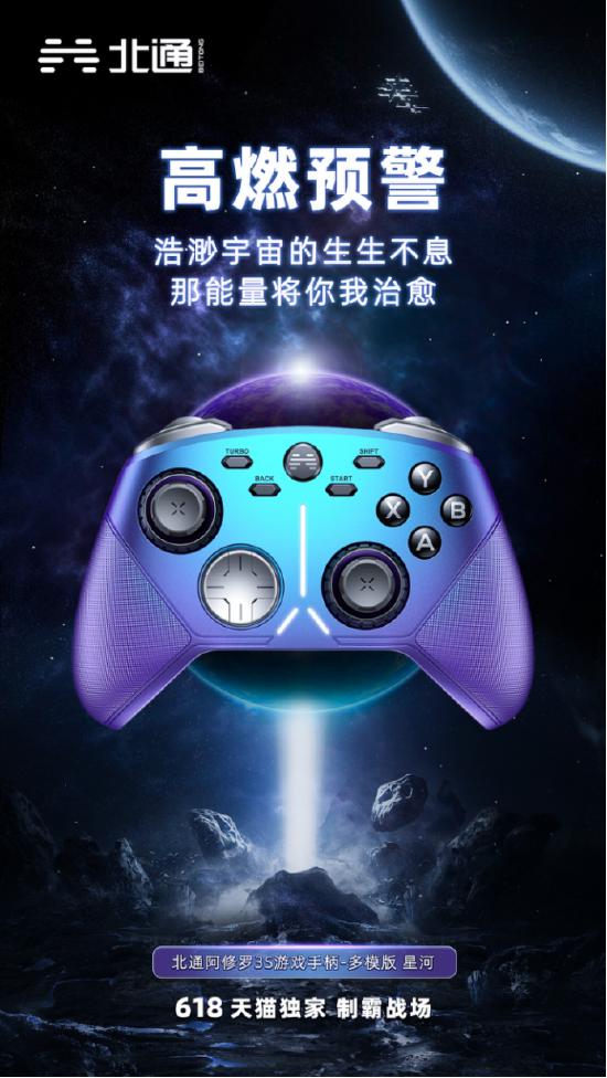 没有人能够抵抗来自浩瀚宇宙的终极浪漫,北通新品光是从颜值这一块,就令人印象深刻了,配置与价格方面也非常值得期待。更多新品信息在北通各大官方平台持续放送终,各位玩家们记得关注,不要错过了!