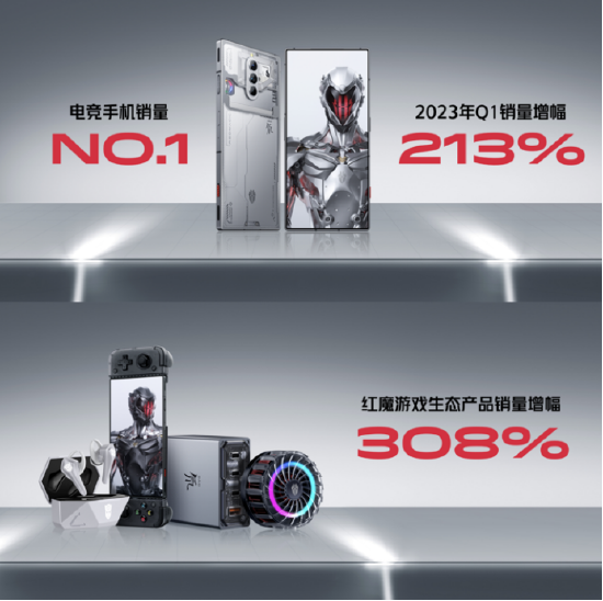 2023年第一季度,红魔取得了213%的销量涨幅,稳居游戏手机领域第一,其游戏生态产品销量也屡夺桂冠,电充产品销量增幅提升308%,散热器销量持续占领行业NO.1。销量领跑的同时,国内外顶级大奖的青睐以及越来越多像若风这样的专业级玩家的喜爱,更进一步说明红魔正在向全球知名电竞装备品牌稳步迈进。