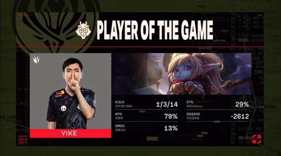 MVP给到了Yike的波比,他真的太尽力了,不过在队友对线完全打不过拿不到线权的情况下,Yike在野区其实过得还蛮惨淡的,但却打出了极佳的效果。