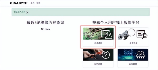 访问技嘉个人用户线上报修平台,注册后即可在线申请产品维修;