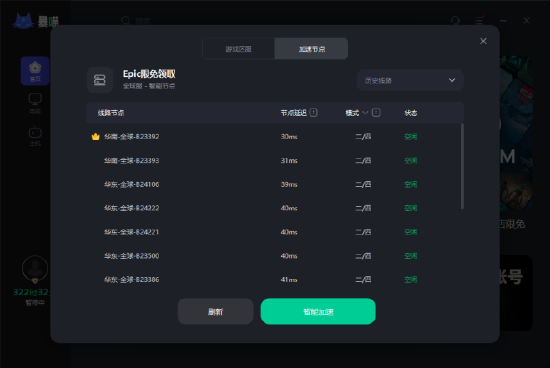 不论你的epic账号是土耳其区,或者是阿根廷区等其他区服,暴喵都可以对你的你的epic账号对应的区服进行加速,也可以自己选择加速节点,可以选择延迟较低的节点进行加速。