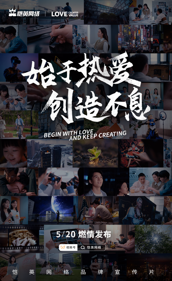 5月20日,恺英网络年度品牌宣传片《始于热爱,创造不息》全网发布,借520的概念传递公司一直以来践行的“热爱创造价值”信仰,讲述与行业、从业者、玩家的缔结的奇妙链接,以热爱为初心的不断坚持与创造。
