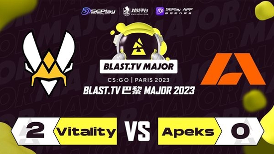 BLAST 巴黎 Major 2023半决赛,东道主小蜜蜂Vitality对阵黑马Apeks,双方即将争夺晋级巴黎Major总决赛的名额。双方经过两场大战,最终Vitality完胜Apeks,以2-0的比分取胜顺利晋级总决赛!