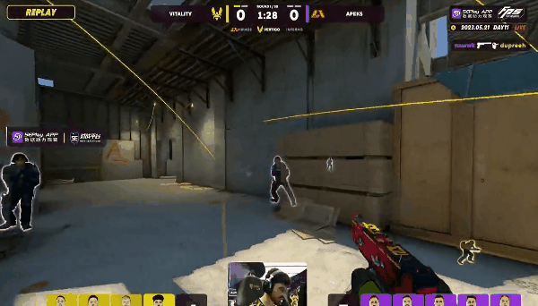 比赛来到上半场第一个长枪局,开局Vitality选择四人抢大坡,却被nawwk拿下三杀。Viality的进攻被Apeks的顶防完全破坏,剩下魔男一人来到1v3残局无力回天。Apeks收下这一分。