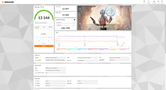 3DMARK第一项是3D Mark Time Spy DX12 测试,影驰 GeForce RTX 4060 Ti 8GB 星曜 OC 的显卡分数为13597分。